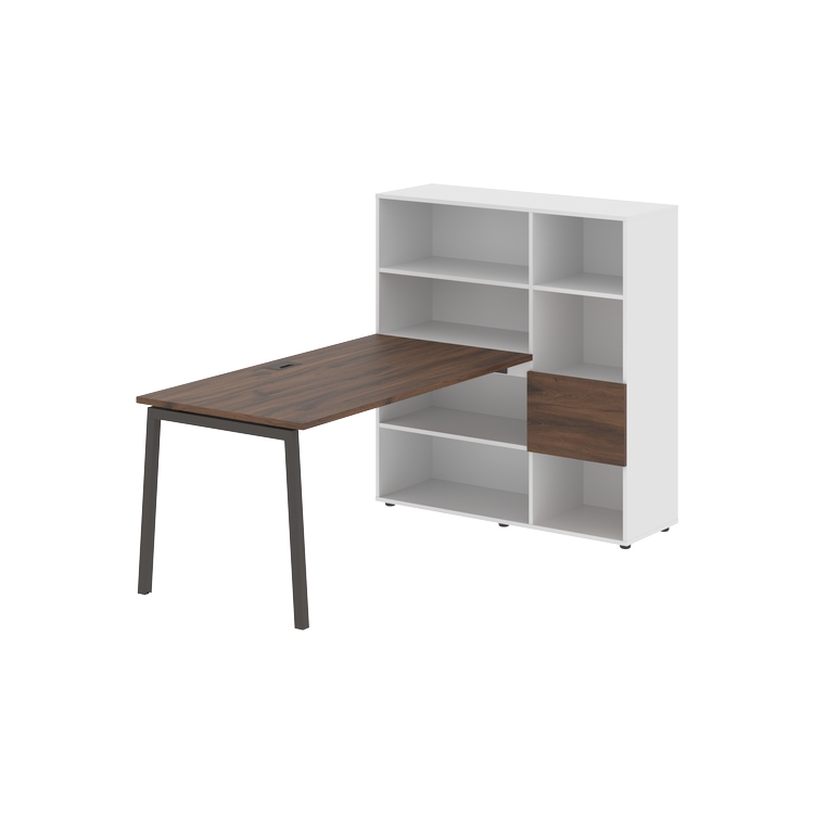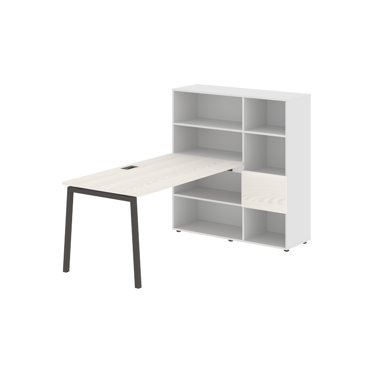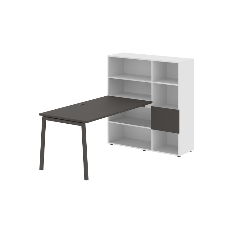 Столешница глубиной 800 мм, комплектуется регулируемой опорой L-образной формы из профиля трубы 40х40, комплектом телескопических траверс и двумя кронштейнами для крепления к стеллажу.