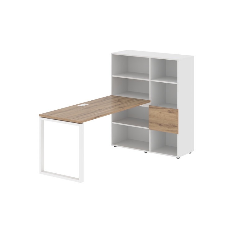 Каркасы стеллажей полностью из ЛДСП т.18 мм с кромками ПВХ т.2 и 0,45 мм, задняя стенка из ЛДСП. Комплектуется малой дверью в цвет столешницы и регулируемыми опорами h= 27 мм.