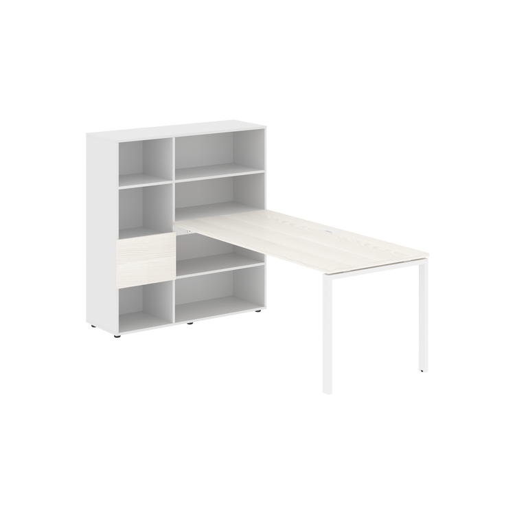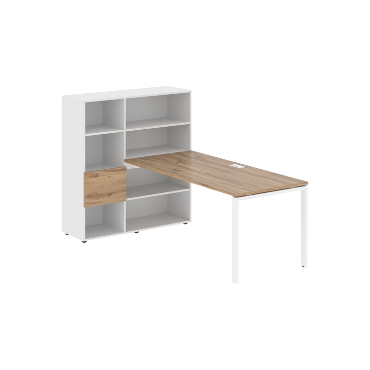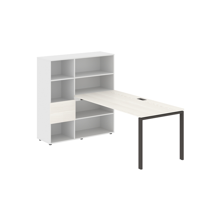 Столешница глубиной 800 мм, комплектуется регулируемой опорой П-образной формы из профиля трубы 60х30, комплектом телескопических траверс и двумя кронштейнами для крепления к стеллажу.