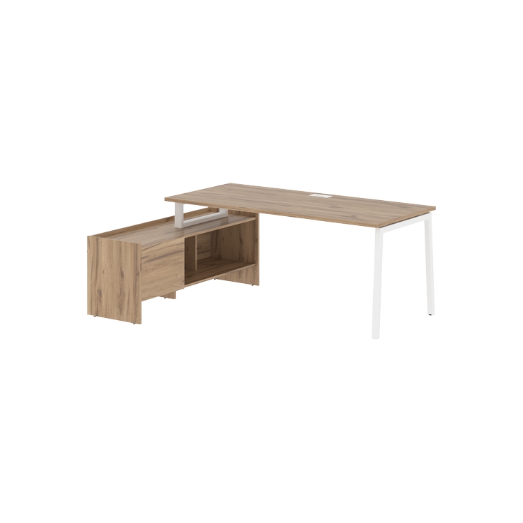 Столешница глубиной 800 мм из ЛДСП т.25 мм с кромками ПВХ по периметру т.2 мм. Комплектуется металлическим кабель-каналом габаритом 160х80х25 мм.