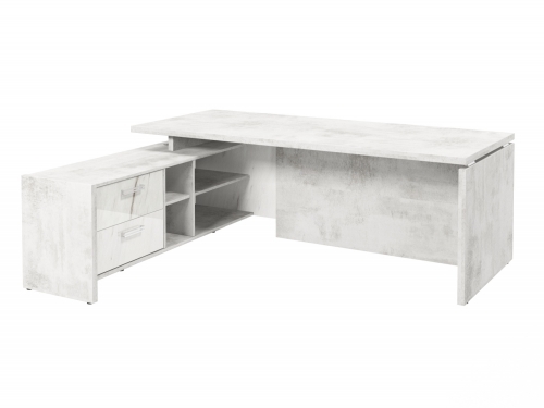 Столешница, бок стола и бок тумбы выполнены из ЛДСП толщиной 38 мм. Цвет - "Хромикс белый". Кромка 2 мм.