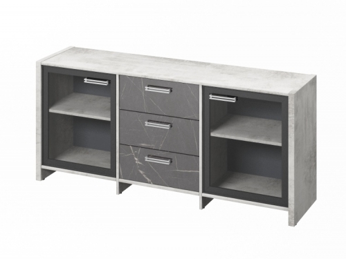 Элемент каталога Тумба трехсекционная с 2 дверьми FI-13-02.G Хромикс белый/Камень Пьетра Гриджиа черный [1116]