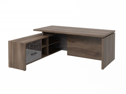 Стол с опорной тумбой FB-119L.GG (L) Орех Пацифик Табак/Камень Пьетра Гриджиа черный