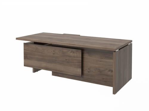 Столешница, бок стола и бок тумбы выполнены из ЛДСП толщиной 38 мм. Цвет - "Орех Пацифик Табак". Кромка 2 мм.