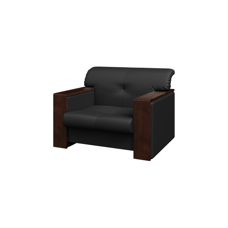 Подлокотники из натурального дерева сочетают в себе изысканность и удобство, а вкупе с обивкой из кожи подчеркнут солидность.